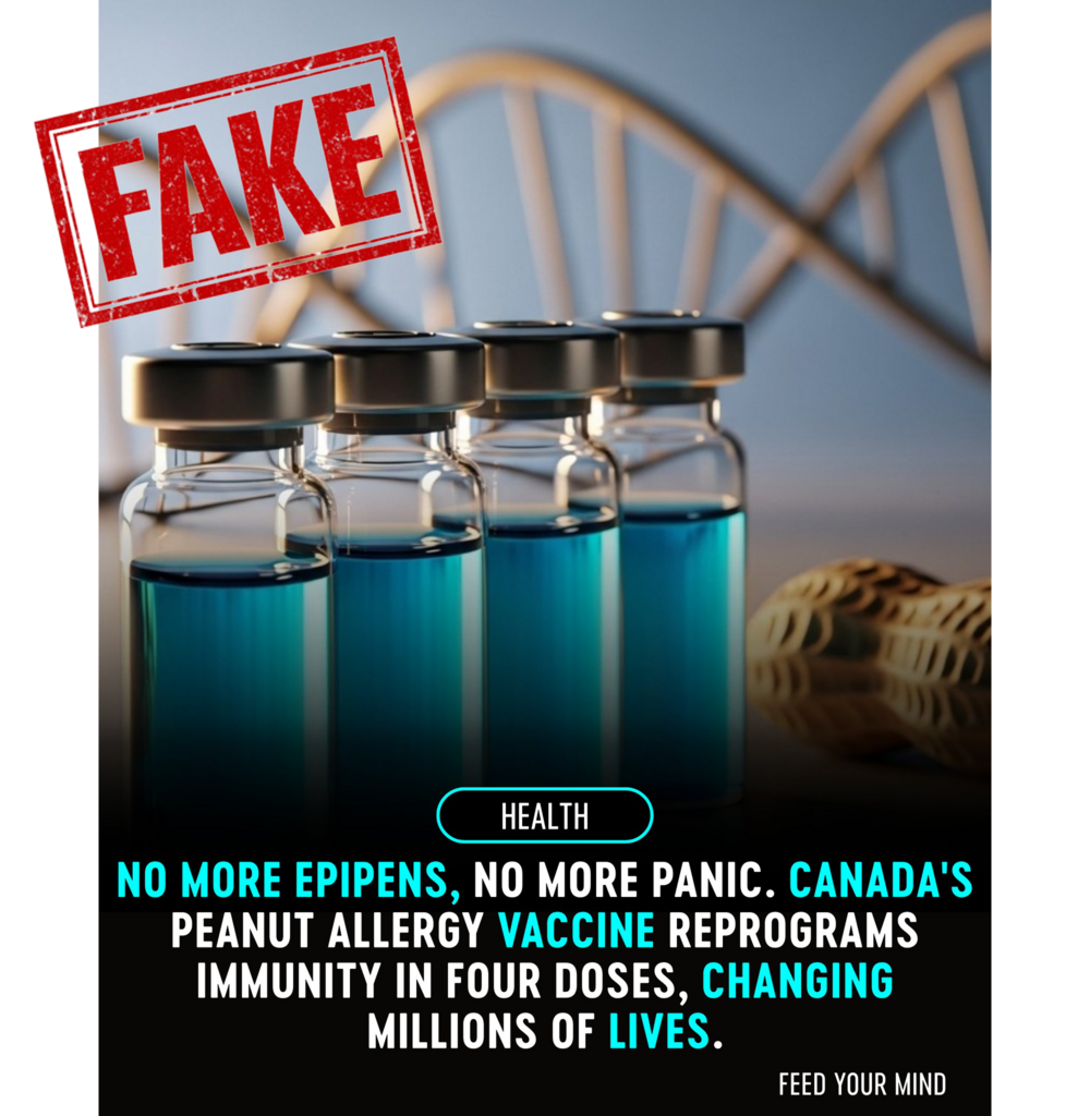 You may have seen a social media post claiming: “No More Epipens, No More Panic. Canada’s Peanut Allergy Vaccine Reprograms Immunity in Four Doses, Changing Millions of Lives.” That would be terrific news if it weren’t entirely fictional: