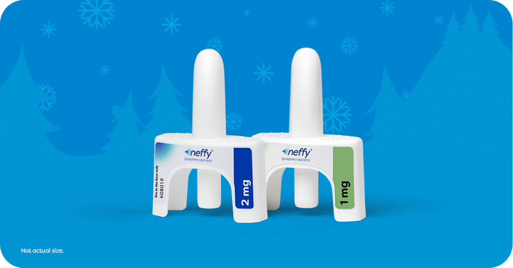 Needle-free neffy delivers the same trusted epinephrine in a nasal spray and is designed to perform in the real world, so you can feel secure knowing it works when needed most. Make sure you’re prepared during the holidays. Here are a few quick reminders: